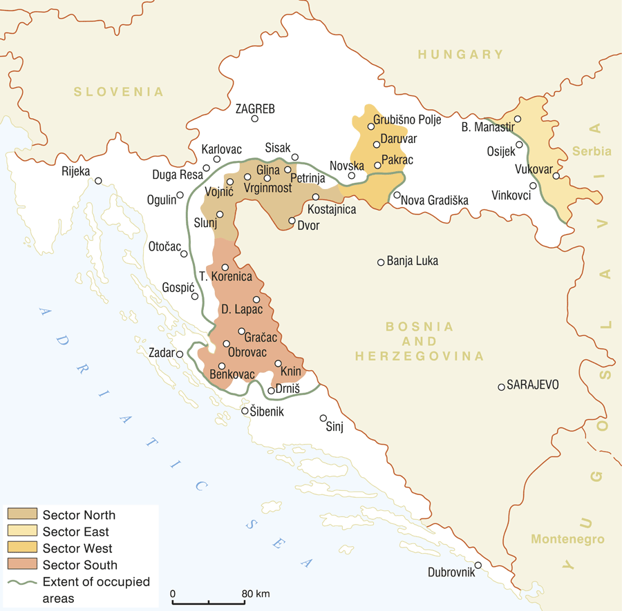 Ab Ende des Jahres 1991 befanden sich etwa 26,5% des kroatischen Staatsgebietes (ungefähr 15 000 km²) unter der Kontrolle serbischer Rebellen. Auf einem Teil dieses Gebiets wurde am 19. Dezember 1991 die "Republik Serbische Krajina" ausgerufen. Die kroatische Bevölkerung wurde terrorisiert und vertrieben. Aufgrund bewaffneter Kampfhandlungen gab es in Kroatien gegen Ende 1991 ungefähr 550.000 Vertriebene und später noch zusätzliche 200.000 Flüchtlinge aus Bosnien und Herzegowina.
