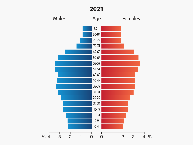 Life expectancy has risen to 81 for women and 75 for men, leading to the more rapid ageing of the population. The average age, which was 30.7 sixty years ago, has risen to 44.3. Almost one quarter of the population of Croatia today is over 65 years old (22%), while fifty years ago, it was 12%. In addition, only 14% of the population today is of elementary school age, while it was 27% in the early 1960s. Natural depopulation is closely related to the process of population ageing, or rather the decrease in the population due to the death rate being higher than the birth rate, and the fall in the average number of children per woman of fertile age (1.5), which puts Croatia side by side with other European countries.