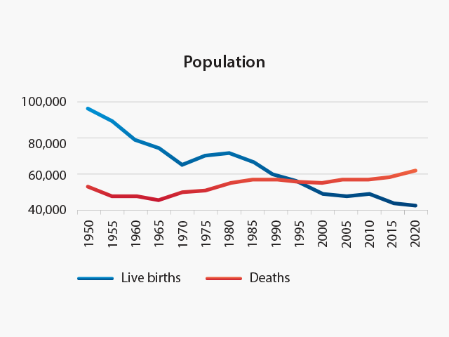 This natural change of -6.8‰, like other demographic processes in Croatia, goes back several decades. The birth rate has been falling constantly since the 1950s, the death rate has been rising since the 1970s, while in the 1990s, when the death rate increased due to war losses, the figures for natural change were also negative.