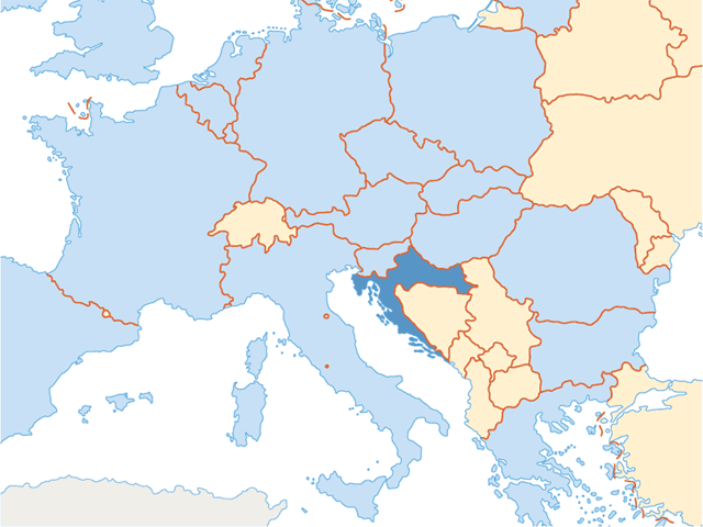 Devido à orientação histórica predominante da maior parte do território atual em direção a Viena e Budapeste, e também devido às características geográficas do seu interior continental, a Croácia é um país da Europa Central. Por outro lado, a sua orla marítima excecionalmente extensa, que, juntamente com o seu interior imediato, esteve historicamente sob a influência decisiva do poder marítimo de Veneza, faz dela um país mediterrânico. No interior da costa adriática, no triângulo das cidades de Nin – Knin – Šibenik, situava-se o núcleo do estado medieval croata primordial. Com a deslocação geral do centro de gravidade económico da Europa para norte e a entrada da Croácia em relações de Estado com a Hungria, o centro de gravidade do Estado Croata também se deslocou para Zagreb.